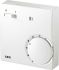 Der Raumtemperatur-Regler eignet sich für die Aufputz-Montage. Er ist mit einem Bimetallregler mit thermischer Rückführung ausgestattet. Eine Anschlussklemme zur Temperaturabsenkung über eine externe Zeitschaltuhr ist integriert.