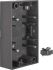 Aufputz-Gehäuse 2fach B.3 anthrazit, matt.Aufputz-Gehäuse für senkrechte und waagerechte Montage zum Einbau von Unterputz Einsätze und Abdeckrahmen. Mit Leitungs-/Kanaleinführung oben/unten, Boden geschlossen, zur Montage auf entflammbarem Untergrund geeignet. Material: Kunststoff, halogenfrei.