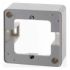 Aufputz-Rahmen 1fach Aufputz, Zubehör polarweiß, glänzend.Aufputz-Rahmen 1-fach für senkrechte und waagerechte Montage, mit Leitungs- und Kanaleinführung, Einführung oben und unten möglich, Flächen-/Designprogramm. Mit dem Aufputz-Gehäuse können Unterputz-Apparate zur Aufputz-Installation verwendet werden. Material: Kunststoff, Duroplast, halogenfrei.