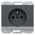 Steckdose mit Schutzkontaktstift und LED-Orientierungslicht K.1 anthrazit, matt.Steckdose erhöhter Berührungsschutz mit Schutzkontaktstift, 2-polig + Erde, weißes LED-Orientierungslicht und integrierter Helligkeitssensor, Schraub-Liftklemmen, Durchverdrahtung möglich.