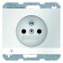 Steckdose m. Schutzko.-Stift u. LED-Orientierungslicht K.1 polarweiß, glänzend.Steckdose erhöhter Berührungsschutz mit Schutzkontaktstift, 2-polig + Erde, weißes LED-Orientierungslicht und integrierter Helligkeitssensor, Schraub-Liftklemmen, Durchverdrahtung möglich.