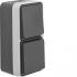Kombination Wechselschalter/Steckdose Schutzkontakt mit Klappdeckel AP W.1 grau.Kombination Wechselschalter/Steckdose Schutzkontakt® mit Klappdeckel AP, IP55. Für senkrechte Montage, Wechselschalter und Steckdose separat anschließbar, mit Steckklemmen, mit einer Einführung für 2 Leitungen und einer Einführung für Leitung oder Rohr, vollflächige Dichtung unter dem Gehäuseboden zur Abdichtung der Gehäuserückseite, mit zufallendem Klappdeckel, manuell einrastbar, um den Schutzgrad IP55 zu erreichen, gut zugängliche, trichterförmige Montagelöcher in den Gehäusen, eine Wago 2-Leiter Verbindungsklemme für Verdrahtung beiliegend, zwei Einrastplätze für Wago 2-Leiter Verbindungsklemmen im Gehäuseboden, viel Platz zur Verdrahtung unter den Sockeln der Einsätze (Hohlboden), einfache Montage des Einsatzes im Gehäuse durch Einrasten, sichere Fixierung des Rahmens am Gehäuse über Bajonett-Schnellverschluss, Verbindungsklemmen nach VDE 0620, Bauart DIN 49440. Gehäuseschrauben und Klappdeckelfedern aus Edelstahl Rostfrei. Aufputz-Installation. Material: Kunststoff, Thermoplast, schlagfest.