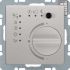 Temperaturregler mit Tasterschnittstelle Q.x alu samt, lackiert.Raumtemperaturregler mit Tasterschnittstelle für individuelle Einzelraumregelung, mit Demontageschutz, Betriebsarten: Komfort, Standby, Nachtabsenkung, Frost-/Hitzeschutz, Taupunkt je durch LED angezeigt, mit Status-LED rot heizen, blau kühlen und gelb für aktiviert, mit Präsenztaste für die Umschaltung zwischen Komfort- und Standby-Betrieb, Präsenztaste und Regulierknopf funktionslos parametrierbar. Für stetige oder schaltende Regelung. Für Heiz- und/oder Kühlbetrieb, Heizen oder Kühlen in 2 Stufen möglich, Ventilschutz parametrierbar, Verhalten bei Busspannungswiederkehr parametrierbar, mit Programmiertaste und roter Programmier-LED, mit 4 unabhängigen Binäreingängen für potenzialfreie Kontakte, 4 Binäreingänge oder 2-3 Binäreingänge und 1-2 Ausgänge parametrierbar, mit integriertem Busankoppler, Busanschluss über Anschlussklemme, Binäreingänge/-ausgänge mit Schraubklemmen. Unterputz-Installation, Flächenprogramm.