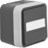 Wechselschalter mit Beschriftungsfeld AP W.1 grau LT.Wechselschalter AP mit Beschriftungsfeld - beleuchtet, IP55. Für Beleuchtung, mit blauem LED-Aggregat 230 V für Schalter/Taster, Beschriftungsfeld ca. 50 x 16 mm, Beschriftungsfeldhöhe für P-touch Band 12 mm ausgelegt, mit N-Klemme, mit Steckklemmen, mit einer Einführung für 2 Leitungen und einer Einführung für Leitung oder Rohr, vollflächige Dichtung unter dem Gehäuseboden zur Abdichtung der Gehäuserückseite, gut zugängliche, trichterförmige Montagelöcher in den Gehäusen, eine Wago 2-Leiter Verbindungsklemme für Verdrahtung beiliegend, zwei Einrastplätze für Wago 2-Leiter Verbindungsklemmen im Gehäuseboden, viel Platz zur Verdrahtung unter den Sockeln der Einsätze (Hohlboden), einfache Montage des Einsatzes im Gehäuse durch Einrasten, sichere Fixierung des Rahmens am Gehäuse über Bajonett-Schnellverschluss, Gehäuseschrauben aus Edelstahl Rostfrei. Aufputz-Installation. Material: Kunststoff, Thermoplast, schlagfest.