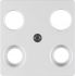 Zentralplatte für Antennen-Steckdose 4Loch Zentralplattensystem Alu.Zentralplatte für 4-Loch Antennen-Steckdosen (Hirschmann), mit 2 zusätzlichen SAT-Ausgängen (F-Buchsen). Hinweis: Nur mit Zwischenring des Schalterprogramms zu verwenden.