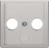 Zentralstück für Antennen-Steckdose 2- und 3Loch Q.x alu samt, lackiert.Zentralstück für 2-und 3-Loch Antennen-Steckdosen, mit ausbrechbarem SAT-Eingang. Unterputz-Installation, Flächenprogramm. Material: Kunststoff, Thermoplast, bruchsicher, halogenfrei.