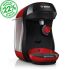 Multigetränkesystem TASSIMO HAPPY friendly TAS103E red Mit Kaffee in den Tag starten TASSIMO HAPPY - die Essentielle Getränkequalität und -Vielfalt Große Getränkevielfalt: Über 70* Spezialitäten wie Espresso, Caffè Crema, Filterkaffee, Latte Macchiato, Cappuccino, heiße Kakao-Spezialitäten und Tee (* = Verfügbares Angebot auf www.tassimo.de) Getränkekompetenz namhafter Marken: z.B. L'Or, Costa, Jacobs, Kenco, Gevalia, Cadbury, Milka und Twinings Perfekte Getränkequalität dank INTELLIBREW: Dank der patentierten Barcode-Technologie wird jedes Getränk mit der richtigen Wassermenge, Temperatur und Brühzeit perfekt zubereitet. Das TASSIMO-Gerät liest den jeweiligen Barcode und brüht so das perfekte Getränk. Genau richtig dosierte Kapsel: Jede T Disc enthält frische-versiegelte Zutaten von hoher Qualität Manuelle Getränkestärke-Anpassung: Für ein milderes oder stärkeres Getränk Keine Geschmacksübertragung zwischen verschiedenen Getränken: Automatischer Dampfstoß zur Reinigung nach jeder Getränkezubereitung Komfort Einfachste Getränkezubereitung: Vollautomatische Getränkezubereitung mit nur einem Knopf Keine Aufheizdauer nach dem Einschalten: Sofortige Zubereitung des ersten Getränks Intuitives LED-Bedienfeld: LEDs informieren über den jeweiligen Gerätezustand und zeigen an, wenn Nachfüllen von Wasser oder Entkalken notwendig ist. Einfache Reinigung: Automatisches Reinigungs- und Entkalkungsprogramm, spülmaschinengeeignete Einzelteile Geeignet für fast alle Tassen: Höhenverstellbares und herausnehmbares Tassenpodest Leicht zugänglicher und einfach zu befüllender Wassertank: Abnehmbarer Wassertank mit 0.7 Litern Fassungsvermögen, von vorne einsehbar Design Platzsparend: kompakte Gerätemaße Farbvielfalt: In vielen attraktiven Farben erhältlich Nachhaltigkeit Innovatives Heizsystem: Die benötigte Wassermenge wird nur bei Bedarf aufgeheizt. Geringer Energieverbrauch: komfortable Selbstabschaltung nach dem Brühvorgang Technische Spezifikation Stromverbrauch: 1400 W Gerätegröße HxBxT: 265 mm x 175 mm x 305 mm Gewicht inkl. Verpackung (kg): 2.78 Zubehör Original-Entkalkungstabletten (TCZ6004) für die optimale Pflege deiner TASSIMO als Sonderzubehör erhältlich: Mit diesen speziellen Entkalkungstabs kann der automatische Entkalkungsprozess durchgeführt und so die Gerätelebensdauer verlängert werden.