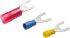 Quetschkabelschuhe, Gabelform Cu, isoliert. Technische Daten - Werkstoff: Cu-ETP nach DIN EN 13600 - Oberfläche: galvanisch verzinnt - Für zugentlastete Verbindungen - Isolation PA (Polyamid, Nylon), halogenfrei - Temperaturbeständigkeit -60°C bis +105°C, 600 V max.,- Easy Entry ermöglicht einfaches und schnelles Einführen des Leiters. Ausführung: Querschnitt: 10 mm², Bolzen-Ø: 5 mm, rot, D1: 4,5