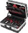 (CIMCO-Artikelnr. 17 0500), ein robuster Werkzeugkoffer aus stoßfestem Kunststoff mit stabilem Aluminiumrahmen und zwei robuste abschließbaren Kippschlössern. Ausgestattet mit einer tiefgezogenen Bodenschale mit zahlreichen Unterteilungsmöglichkeiten sowie eine tiefgezogene Bodenabdeckplatte, die einseitig mit Werkzeugtaschen bestückt ist. Zudem eine herausnehmbare Werkzeugtafel mit Dokumentenfach und einer Vielzahl von Werkzeugeinsteckfächern. Größe: LxBx 450x395x205 mm, Innenmaß L/B/H1/H2/H#: 430/390/100/100/200 mm, Gewicht: leer 3.450 g, bestückt 6.500 g. Werkzeugkoffer-Bestückung, je 1x: VDE-Telefonzange mit gebogenen Backen, 200 mm (10 0238), Schraubenzange, 160 mm (10 0352), VDE-Kraftseitenschneider, 200 mm (10 0528), Elektronik-Seitenschneider (10 1040), 1.000 V Schlitz-Schraubendreher 3,0x0,5x100 mm (11 7702), 1.000 V Schlitz-Schraubendreher 4,0x0,8x100 mm (11 7704), 1.000 V Schlitz-Schraubendreher 5,5x1,0x125 mm (11 7705), 1.000 V Kreuzschlitz-Schraubendreher, PZ 1x80 mm (11 7751), 1.000 V Kreuzschlitz-Schraubendreher, PZ 2x100 mm (11 7752), Spezial-Schraubendreher mit Kombi-Profil, PZ FL 1 x 80 mm (11 7741) Spezial-Schraubendreher mit Kombi-Profil, PZ FL 2x100 mm (11 7742), 1.000 V TX-Schraubendreher 155 mm, T 10x60 mm (11 7910), 1.000 V TX-Schraubendreher 170 mm, T 15x75 mm (11 7915), 1.000 V TX-Schraubendreher 195 mm, T 20x100 mm (11 7920), 1.000 V TX-Schraubendreher 195 mm, T 25x100 mm (11 7925), Kabelentmantler ALLROUNDER, 4 - 15 mm ø (12 0009), Automatische Abisolierzange Power Strip, Länge 170 mm (10 0770), VDE Kabelschere, 180 mm (12 0114), Universal-Schaltschrankschlüssel (11 2894)Schaltschrank-Wasserwaage mit Magnet, 250 mm (21 1528), Presszange click `n` crimp Elektrotechnik (10 6000), Locator Box für Kabelentmanteler (12 9009)