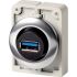 Einbaubuchse, Allgemeines Zubehör, mit fest angeschlossenem USB 3.0 Typ A Stecker, Schutzart: IP65 (mit geschlossener Abdeckung), IP20 (mit Stecker in gestecktem Zustand), Frontring Metall, Anbindung an SmartWire-DT: nein, verwendbar für: Frontmontage, Anzahl der Pole: 9