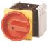 Hauptschalter, Sortiment: Hauptschalter, Wartungsschalter, Reparaturschalter, Typkenner: T5, Stopp-Funktion: NOT-AUS-Funktion, mit rotem Drehgriff und gelbem Sperrkranz, 3-polig + N, Verriegelungsvorrichtung: In der Position 0 (Aus) verriegelbar, Schutzart: Front IP65, Bauform: Einbau, Schaltwinkel: 90 °, Bemessungsbetriebsleistung AC-23A, 50 - 60 Hz 400 V: P = 55 kW, Bemessungsdauerstrom: Iu = 100 A, 3 Baueinheit(en), Normen und Bestimmungen: IEC/EN 60947, VDE 0660, IEC/EN 60204, Lasttrennschalter nach IEC/EN 60947-3