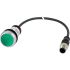 Leuchtdrucktaste, RMQ Compact Solution, Komplettgerät, Bauform: flach, rastend, Verbindungstyp: Kabel (schwarz) mit M12A-Stecker, 4-polig, Kabellänge: 1 m, Farbe LED: grün, Tastenplatte: grün, Tastenplatte unbeschriftet, Bemessungsbetriebsspannung LED: 24 V AC/DC, Name: Ohne, Schutzart: IP66, IP67, IP69K (vorne), IP65 (hinten), Frontring Titan, Anbindung an SmartWire-DT: nein, S = Schließer: 1 S, Normen und Bestimmungen: IEC/EN 60947-5-1, VDE 0660