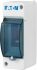 Mini-Kleinverteiler aus Kunststoff, mit transparenter Tür, für die Installation von Schalt- und Schutzgeräten, gemäß Maßnorm DIN 43 880, mit 70 mm Einbautiefe und einer Spannung bis 63 A, 400 V/50 Hz, Schutzart IP30 nach IEC/EN 62208, zugelassen für Installationsverteiler in Gebäuden nach IEC/EN 61439-3, für Aufputzmontage, oben mit 46-mm-Geräteöffnung, standardmäßig plombierbar, Unterteil und Deckel weiß mit Schraubverschluss, Vorprägung für metrische Leitungseinführungen oben 1x M20, unten 1x M20, Rückseite 2x M20, Schutzklasse II, 2 Teilungseinheiten.