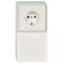Steckdose im Geräteträger mit Schachtauslass 1-fach, 16 A 250V AC, Farbe reinweiß, Steckklemmen Klemmbereich für Kupferleiter 1,5 mm und 2,5 mm.