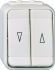Jalousietaster, 10 A 250V AC. Farbe: licht-/basaltgrau, mit mechanischer u. elektrischer Verriegelung gegen gleichzeitige Betätigung, nach Entfernung der Rückstellfeder auch als Jalousieschalter verwendbar, für Aufputzmontage. Schutzart IP 44, mit zwei Leitungseinführungen, Steckklemmen: Klemmbereich für Informationsleitungen ab Leitungsdurchmesser 0,5mm, für Kupferleiter 1,5 mm und 2,5 mm.