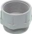 Erweiterung EWK-M Erweiterung eines metrischen Gewindes in eine größere Abmessung metrisches Außengewinde und metrisches Innengewinde Material: Polyamid, glasfaserverstärkt, Farbe: grau (auch in schwarz lieferbar) Temperaturbereich: -30°C ... +100°C Eigenschaften: beständig gegen schwache Säuren und Laugen / beständig gegen Meerwasser, Benzin und Mineralöl