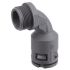 Kunststoff Schnellverschraubung Bogen 90° RQB1 90-M, IP 66 einteilig, metrisches Außengewinde, konisch dichtend, für ROHRflex Wellschläuche Material: Kunststoff (PA), Farbe: grau (auch in schwarz lieferbar) Temperaturbereich: -40°C ...+120°C Zulassungen: VDE geprüft EN/IEC 61386-23 / UL 1696 CSA 22.2 UR-File-no E86359 / NFPA 130 - ASTM E 162-E 662 SMP 800-C / Lloyds Register of Shipping / Gost, Eigenschaften: beständig gegen Öl und Benzin / silkon-, cadmium und halogenfrei / weitgehend säure- und lösungsmittelbeständig