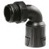 Kunststoff Schnellverschraubung Bogen 90° RQLB1 90-M, IP 65 metrisches Außengewinde, konisch dichtend, für ROHRflex Wellschläuche Material: Kunststoff (PA modifiziert), Farbe: schwarz (auch in grau lieferbar) Temperaturbereich: -40°C ...+120°C Zulassungen: UL 1696 CSA 22.2 UR-File-no E86359 / NFPA 130 - ASTM E 162-E 662 SMP 800-C, Eigenschaften: beständig gegen Öl und Benzin / silkon-, cadmium und halogenfrei / weitgehend säure- und lösungsmittelbeständig
