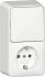 Kombination Wippschalter/Schutzkontaktsteckdose (Typ F) 16 A 250 V~ senkrecht mit Montageplatte Reinweiß Universal-Aus-Wechselschalter