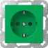Schutzkontaktsteckdose (Typ F) 16 A 250 V~ Grün glänzend mit grüner Abdeckung - Geerdeter Tragring. Mit erhöhtem Anpressdruck des Erdungsbügels geprüft nach T.N.O. Die Sockel der Schutzkontakt-Steckdosen sind farblich entsprechend gekennzeichnet.