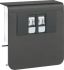 Geräteträger Datenanschluss 2xCat.6A zu SL 20x80mm graphitschwarz.Geräteträger zum Elektro-Installationskanal-System Sockelleistenkanal nach DIN EN 50085-1 als Geräteeinbaukanal. Komplett vormontierte Geräteträger zum Aufrasten auf das Sockelleistenkanal-Unterteil bestehend aus Geräteträger-Unterteil mit Arretierschraube, 2 RJ45 UAE-Module (8/8) und Geräteträger-Oberteil.
