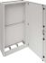 Schrank, univers, IP41, SK I, 1850 x 800 x 275 mm. Einzelstandverteiler für die Innenraummontage mit VDE-Gutachten (Fertigungsüberwachung) nach DIN EN 61439-1/-2/-3 und Maßnorm DIN 43 870, zur Aufputz Montage. Zum Aufbau einer Niederspannungsverteilung bis 630 A, 3AC 230/400 V 50 Hz. Schutzart IP41, Schutzklasse I, Luft- und Kriechstrecken nach DIN VDE 0110-1/-2. Bestehend aus Schrank mit Tür aus pulverbeschichtetem, eingebranntem, profiliertem 1,5 mm dicken Stahlblech. Leitungseinführungen oben und unten vorbereitet für ISO-Flanschplatten 1x pro Feld. Sammelschienendurchführungen als seitliche Vorprägung. Tür aufliegend, mit innen liegenden Scharnieren, Türanschlag standardmäßig rechts, wechselbar, mit 110 Grad Öffnungswinkel, Drei-Punkt-Verschluss serienmäßig. Hinweis: Wand- und Bodenbefestigung notwendig! Türverschluß durch andere Schließungen austauschbar. Schrank nebeneinander anflanschbar.
