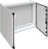 Schrank, univers, IP55/I, 950x 1050x275mm.Wandaufbauschrank für die Innenraummontage mit VDE-Gutachten (Fertigungsüberwachung) nach DIN EN 61439-1/-2/-3 und Maßnorm DIN 43870, zur Aufputz Montage. Zum Aufbau einer Niederspannungsverteilung bis 800 A, 3AC, 690 V 50 Hz. Schutzart IP55, Schutzklasse I, Luft- und Kriechstrecken nach DIN VDE 0110-1/-2. Bestehend aus Schrank mit Tür aus pulverbeschichtetem, eingebranntem, profiliertem 1,5 mm dicken Stahlblech. Durchsteckflansche oben, unten ISO-Flanschplatten mit metrischen Vorprägungen und Schnellverriegelung je Feld eingebaut. Sammelschienendurchführungen als seitliche Vorprägung. Tür aufliegend, mit innenliegenden Scharnieren, Türanschlag standardmäßig rechts, wechselbar, 110 Grad Öffnungswinkel. Serienmässig mit Schwenkhebelverschluss, DIN-Profil-Halbzylinder einbaubar. Türdichtung umlaufend geschäumt, temperaturbeständig und ölbeständig. Schrank nebeneinander und übereinander anflanschbar.