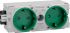 Steckdose 2-fach mit Wago Steck-/Klemmtechnik C-Profil in minzgrün.Kanalsteckdose mit erhöhtem Berührungsschutz, vorverdrahtet, anreihbar durch 3-poliges Steckverbindersystem mit Schnellbefestigung für Geräteeinbausystem mit C-Profil. Leitungsanschluss über Steckklemmen 1,5 - 2,5 mm² oder über verpolungssicheres Steckverbindersystem.