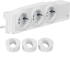 Schutzkontaktsteckdose (Typ F), universal, 3fach drehbar, geschraubt, Hutschienenmontage.Vorverdrahtete Schutzkontaktsteckdose 3-fach mit erhöhtem Berührungsschutz mit Anschlussgehäuse für Leitungsanschluss über Steckklemmen 1,5 - 2,5 mm². Drei voneinander unabhängige Steckdosentöpfe um 90° drehbar. Zur Schnellbefestigung in Verteilerschränken für DIN-Hutschiene oder Montageplatten. Für die Schutzklasse II (schutzisoliert) sind Euroadapter einzustecken. Das Steckdosen-Anschlussgehäuse ist mit einem Überspannungsschutz-Modul Typ 3 einbaubar (nicht enthalten).