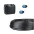 Erdreichverlegeset mit Kollektorrohr aus PE-HD DN 32x2,9 mm als Ring mit 100 m Rohr, Anschlussverschraubungen aus PE-HD DN 32 x 1 Zoll AG und Ethylenglykol-Frostschutzmittel im 20-l-Kanister, ausreichend für 1 Füllung aus ca. 25% Glykol-Wassergemisch.