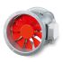 Axial-Hochleistungsventilator mit zylindrischer Rohrhülse, beidseitigen Flanschen, direkt angetrieben, explosionsgeschützt gemäß ATEX. Zylindrisches Rohr aus verzinktem Stahlblech, mit Laufrad umschließend, beidseitig angeformtem Flansch, Lochbild nach DIN 24155. Mit außenliegendem Klemmenkasten. Laufrad mit 5 Schaufeln aus Thermoplast. Hoher Wirkungsgrad, niedriges Betriebs- geräusch. Vibrationsfreier Lauf durch dynamische Wuchtung nach Gütestufe G 6.3 VDI 2060 und DIN ISO 1940. Einsetzbar im Bereich von -20 °C bis +40 °C. Oberflächen- widerstand geringer als 1 GOhm. Drehstrom-Kurzschlußläufer-Motor, geschlossene Bauweise, wartungsfrei, gedichtete, geräuscharme Kugellager mit Langzeitschmierung, nicht regelbar. Ex-Ausführung gemäß ATEX.