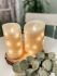 LED-Wachskerze mit LED-Lichterkette Tauperlen, 3-D Flamme in Tropfenform, 4h-/6h-Timer, batteriebetrieben, ohne Batterien (3 x AAA)
