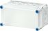 Gehäuse für den Bau von Energie-Schaltgerätekombinationen bis 630 A oder als Einzelgehäuse. Aus hochwertigem Polycarbonat schutzisoliert. Wanddurchführungen mit großen Öffnungen für die elektrische Verbindung der Gehäuse untereinander. Kabeleinführung an allen Gehäusewänden über metrische Vorprägungen oder Anbauflansche. Gehäuse zur Wandbefestigung auch über Außenlaschen oder mit Montageschienen. Leergehäuse mit nicht durchsichtigem Deckel. Einbaumaße B 275 x H 125 x T 150 mm für den Einbau von Geräten auf Montageplatte oder DIN-Tragschiene. Max. Einbautiefe bei eingebauter Montageplatte 146 mm, bei eingebauter Tragschiene 135 mm. Deckelverschlüsse mit Werkzeugbetätigung.