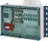 Gehäuse für den Bau von Energie-Schaltgerätekombinationen bis 630 A oder als Einzelgehäuse. Aus hochwertigem Polycarbonat schutzisoliert. Wanddurchführungen mit großen Öffnungen für die elektrische Verbindung der Gehäuse untereinander. Kabeleinführung an allen Gehäusewänden über metrische Vorprägungen oder Anbauflansche. Gehäuse zur Wandbefestigung auch über Außenlaschen oder mit Montageschienen. Anschlussfertiger Verteiler mit 2 Sicherungslasttrennschaltern NH 00, 3-polig, auf 5-poligem Sammelschienensystem 250 A.