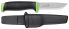 Handwerkermesser mit rutschsicherem Griff und sägezahnförmiger Klinge, welche für das Schneiden von festen Gegenständen oder Oberflächen, wie Seile oder Taue, die unter Spannung stehen, geeignet ist. Durch die einzigartige Befestigungsweise an Knöpfen der Berufskleidung kann es nicht verloren gehen, ist zugleich aber leicht abnehmbar. Klinge aus 2,0 mm starkem rostfreien Stahl der Härte 57-59 HRC. Die Klinge wurde in mehreren Schritten geschärft und 60mm der Klinge sind mit Sägezähnen versehen, um die Schneidkraft zu maximieren. Der Stiel wird aus besonders widerstandsfähigem PP-Kunststoff und der Friktionsgriff aus Santopren hergestellt. Befestigung der Scheide entweder am Gürtel oder an Knöpfen. Bei einem dicken Gürtel einfach den kleinen Zapfen am Verschluss entfernen. Das Kappmesser RKR GH passt in die gleiche Scheide wie das HVK Messer.