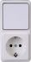 Aufputz, Kombination Universalschalter (Aus/Wechselschalter) und Schutzkontakt-Steckdose ohne erhöhten Berührungsschutz,10AX/16A, 250V~, Schutzart IP20, STANDARD, Farbe: arktisweiß
