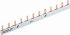 Verdrahtungsschienen für D0 und zylindrische Sicherungsgeräte in 2 Ausführungen erhältlich: Gabelausführung: zur Verdrahtung Modular Einbaugeräte nach DIN 43880 mit flacher, Doppelfunktions- oder Einzelschraubklemme-es werden zusätzliche Einspeiseklemmen benötigt. Im Gegensatz dazu ermöglichen Geräte mit Doppelfunktionsanschlüssen einen Schienenanschluss zum Klemmenoberteil bei gleichzeitiger Einspeisung im unteren Abschnitt. Die Verwendung von Endkappen an mehrpoligen Verdrahtungsschienen gewährleistet einen optimalen Berührungsschutz und verhindert Lichtbögen an den Enden. Stegausführung: zur Verdrahtung Modular Einbaugeräte nach DIN 43880 mit Rahmen- oder Zwei-Leiterklemme Es werden zusätzliche Einspeiseklemmen benötigt.