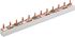 Verdrahtungsschienen für D0 und zylindrische Sicherungsgeräte in 2 Ausführungen erhältlich: Gabelausführung: zur Verdrahtung Modular Einbaugeräte nach DIN 43880 mit flacher, Doppelfunktions- oder Einzelschraubklemme-es werden zusätzliche Einspeiseklemmen benötigt. Im Gegensatz dazu ermöglichen Geräte mit Doppelfunktionsanschlüssen einen Schienenanschluss zum Klemmenoberteil bei gleichzeitiger Einspeisung im unteren Abschnitt. Die Verwendung von Endkappen an mehrpoligen Verdrahtungsschienen gewährleistet einen optimalen Berührungsschutz und verhindert Lichtbögen an den Enden. Stegausführung: zur Verdrahtung Modular Einbaugeräte nach DIN 43880 mit Rahmen- oder Zwei-Leiterklemme Es werden zusätzliche Einspeiseklemmen benötigt.