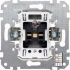 Die Wippe für Serienschalter. Wippe für Rollladenschalter und -taster aus Systemm, System Design und System Fläche können auf den Busankoppler-Einsatz 2fach aufgesteckt werden. Als Sonderanfertigung können auch die Schalterprogramme AQUADESIGN und AQUACLASSIC für den Busankoppler-Einsatz 2fach angepasst werden. Mit integriertem Busankoppler. Bei der Ausführung mit Mittelstellung können die Wippen nach oben und nach unten betätigt werden (Dreistellungswippe). Bei der Ausführung ohne Mittelstellung werden nur bei Betätigungen der unteren Wippenhälfte Telegramme erzeugt (Zweistellungswippe). Für die Montage in eine 60er-Installationsdose. Mit Taster und LED für den Programmiervorgang. Softwarefunktionen KNX: Für Artikelnummer 671298: Schalten. Umschalten. Dimmen. 1 Jalousiegruppe. Für Artikelnummer 671299: Schalten. Umschalten. Dimmen. 2 Jalousiegruppen. Ausführung: mit Mittelstellung.
