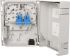 Glasfaser Spleiß-/Verteilgehäuse zum Einsatz als Hausübergabepunkt , bestückt mit SC-D Kupplungen und SC-Pigtails, Deckelverriegelung mittels Rasthaken mit Möglichkeit zur Plombierung., Deckel kann zur Erleichterung der Montage sehr einfach demontiert werden, Spleißkassette zur einfachen Montage und Wartung bei größtmöglichem Schutz der Fasern mit Auskreuzungsmöglichkeit und Faserüberlängenablage, mit oder ohne Schloss erhältlich, Zugentlastung für Kabel und Patchkabel, Montagemöglichkeit und Fixierung für Gas-/Wasserblocker vorhanden, Patchkabelausgang mit flexibler Lamellendichtung, zwei Kabeleinführungen für M20/25, eine M20-Verschraubung beiliegend, Befestigungsmöglichkeit für optische Koppler, strukturiertes ASA (Acrylester-Styrol-Acrylnitril) in RAL 7035, extrem widerstandsfähiger Kunststoff, schlagzäh und witterungsbeständig, Schutzklasse nach IEC 60529: IP 54, Varianten: bestückt mit bis zu 6 SC-D Kupplungen und bis zu 12 SC-Pigtails, jeweils blau (OS2) oder SC-D APC Kupplungen, jeweils grün (OS2)