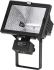 Für Halogen-Glühlampen (QT-DE 12) Schutzklasse I, IP65, IK07 Leuchte aus Aluminium-Druckguss, unbeschichtet, achsensymmetrischer Aluminiumreflektor Struktur geglänzt, alle äußeren Stahlteile rostfrei, temperaturwechselbeständiges Sicherheitsglas, Silikondichtung, Rahmen klappbar, Montagebügel aus Edelstahl, 2 Bohrungen Durchmesser 9 mm, Abstand 70 mm, 1 Mittelloch Durchmesser 10,5 mm, Neigungsbereich 100 Grad, Kabelanschluss: PG13,5, serienmäßig ohne Lampe
