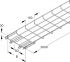 Gitterrinne nach DIN EN 61537, U-förmig, aus Stahldrähten, punktgeschweißt, zur Schnellbefestigung mit angeschweißten Stoßstellenverbindern in den Seiten und im Boden. VDE zertifiziert! Abmessungen (ca. Maße) Nennmaße H x B (innen) : 30 x 200 mm Längsdraht-Ø : 3,9 mm Bodenlängsdrahtabstand : 50 mm Querdraht-Ø : 3,9 mm Querdrahtabstand : 100 mm Lieferlänge L : 3000 mm Nutzbarer Querschnitt : 5344 mm² Werkstoff : Stahl, galvanisch verzinkt nach DIN EN ISO 19598, blaupassiviert