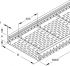 Weitspannkabelrinne, nach DIN EN 61537, mit durchgehend gelochten und gesickten Seitenholmen, sowie eingenietetem Boden mit versetzt angeordneter Perforation und gelochten Quersicken zur Stabilisierung und Trennstegbefestigung. Stoßstellenverbinder WSV 105.390 bitte gesondert bestellen. Abmessungen (ca. Maße) H x B : 105 x 200 mm Materialstärke : 1,5 mm Quersickenabstand : 300 mm Seitenholmlochung : 9,5 x 13 mm Lochabstand : 50 mm Lieferlänge : 3000 mm Nutzbarer Querschnitt : 15955 mm² Werkstoff : Stahl, bandverzinkt nach DIN EN 10346