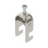 Bügelschelle mit F-Fuß, Metalldruckwanne mit gerundeten Kanten für Kabelschutz. Zur vertikalen und horizontalen Montage von 1 Einzelkabel an Flacheisen. Mit 1-gängiger Schraube an Druckwanne, universeller Sechskant-Schraubenkopf SW10, mit Schlitz und Kreuzschlitz. Geeignet für Montage im Innen-und Außenbereich. Der Einsatz einer Gegenwanne wird empfohlen.