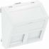 Datentechnikträger mit schrägem Auslass und Verschlussschieber zur Aufnahme von zwei Datentechnik-Anschlussmodulen mit RJ45-Buchse. Die Rastbefestigung eignet sich für den waagerechten und senkrechten Einbau in die Systemumgebung. Typ PA hat eine spezielle Modulaufnahme und ist für eine indirekte Befestigung der Daten-Anschlussmodule in der Montageöffnung ausgelegt.