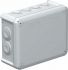 Kabelabzweigkasten zum Verbinden von Kabeln und Leitungen im Innenbereich und geschützten Außenbereichen. Rechteckige Form mit Einsteckdichtungen an den Seiten und Ausschlageinführungen im Boden. Geeignet für die Wand-/ Deckenmontage und die Montage auf Montageblechen. Mit der Möglichkeit zur Innenbefestigung und Montage über die Eckdome. Deckel mit Schnellverschluss, plombierbar. Hergestellt aus halogenfreien und UV-resistenten Materialien. Kabelabzweigkasten gemäß DIN EN 60670. Flammwidrig nach DIN EN 60695-2-11, Prüftemperatur 650°C. Schlagfestigkeit IK05 gemäß DIN EN 50102.