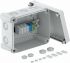Kabelabzweigkasten zum Verbinden von Kabeln und Leitungen im Innen- und Außenbereich. Rechteckige Form mit Ausschlageinführungen. Geeignet für die Wand-/ Deckenmontage mit der Möglichkeit zur Außenbefestigung, Innenbefestigung oder Montage über die Eckdome. Besonders schlagfest mit IK09. Deckel mit Schnellverschluss, plombierbar. Hergestellt aus halogenfreien und UV-resistenten Materialien. Inklusive 5-poliger Hauptleitungsabzweigklemme, jede mit 2 x 25 mm² + 2 x 16 mm² Leiteranschlussquerschnitten pro Pol. Kabelabzweigkasten gemäß DIN EN 60670. Flammwidrig nach DIN EN 60695-2-11, Prüftemperatur 650°C. Schlagfestigkeit IK09 gemäß DIN EN 50102. Schutzart IP67 gemäß DIN EN 60529.