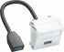 Multimediaträger mit einer USB 3.0-Anschlussbuchse, Kabelauslass schräg, mit Beschriftungsfeld, kurzes USB 3.0 Typ A-Anschlusskabel in Ausführung Buchse-Buchse. Trägerplatte mit Rastbefestigung, geeignet für den waagerechten und senkrechten Einbau in die Systemumgebung.