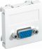 Multimediaträger mit einer VGA-Anschlussbuchse, Kabelauslass gerade, mit Beschriftungsfeld, VGA-Buchse (HD15) mit Schraubanschluss. Trägerplatte mit Rastbefestigung, geeignet für den waagerechten und senkrechten Einbau in die Systemumgebung.