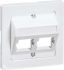 Zentralplatte für 2 Module von Commscope AVAYA Anixter Systimax MPS100E cat 5, MPS S200E, MGS 300, MGS 400 und MGS 600, 30° Schrägauslass, mit Metalltraggestell für Schraubbefestigung, mit Beschriftungsfeld 7 x 44 mm